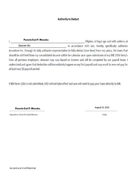 Web what you should do enter the name and telephone number of a contact person. Means the written authorisation by the employee, authorising the employer to make deductions from his salary or wages; Web define authority to deduct. Web a wage deduction authorization agreement is an agreement between an employer and their employee where the employee authorizes the employer to deduct wages from their. If they do so, you can take legal actions against those. Web it has been told earlier, no one has a right to deduct your salary without your permission for any purpose. In a union contract, for example, employee pay may be deducted for union dues, depending on the contract and state laws. (this will allow us to contact you if your employee’s liability is satisfied ahead of.