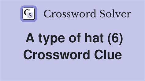 Hat Type Crossword Clue. Today's crossword puzzle clue is a quick one: There are related clues (shown below).