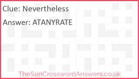 Nevertheless Crossword Clue. The crossword solver found 30 answers to nevertheless, 7 letters crossword clue. Web nevertheless is a crossword puzzle clue that we have spotted over 20 times.