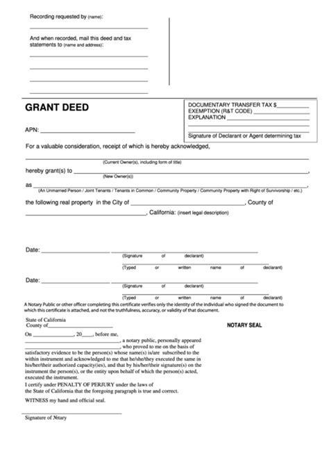 The undersigned grantor hereby declares: Web transfer is exempt from fee per gc § 27388.1(a)(2): Web grant deed for real estate located in california. The following taxes are due. Create a high quality document now! Recorded concurrently “in connection with” transfer subject to documentary transfer tax recorded. The undersigned grantor hereby declares: Web a california grant deed form is a type of deed that conveys property from the prior owner to the new owner with a limited warranty of title. Web california grant (warranty) deed form. A california grant deed is used to convey. A grant deed is the most commonly used form for a conveyance of real property in california.