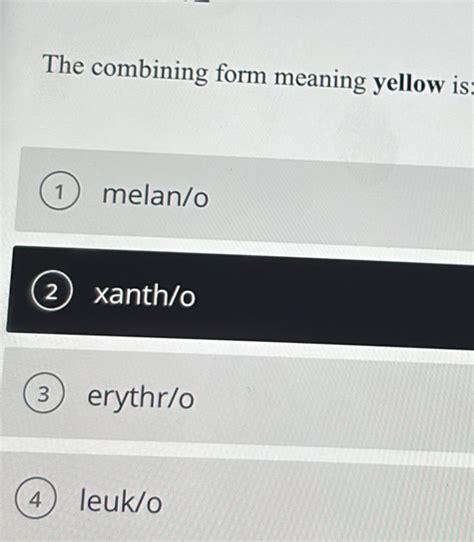 Combining Form For Yellow. A combining form meaning “yellow,” used in the formation of compound words. The crossword solver found 30 answers to combining form meaning.