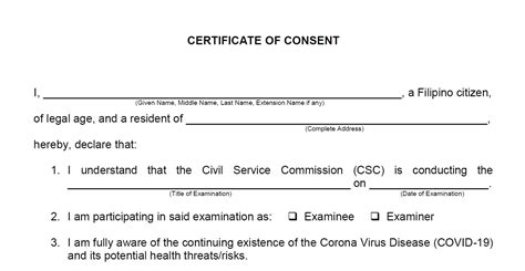 Download CSC Certificate of Consent Form