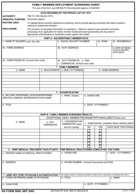 PPT DA Form 5888 Family Member Deployment Screening Sheet PowerPoint