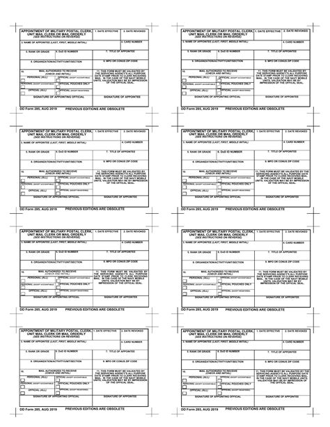 Dd Form 285. Web dd form 285, aug 2019. Appointment of military postal clerk, unit mail clerk or mail orderly.