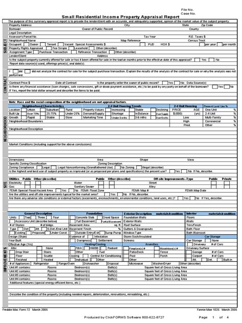 Small Residential Property Appraisal Report (Form 1025