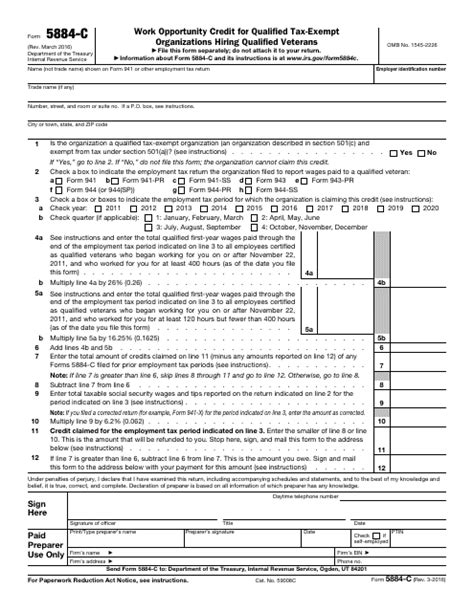 Fillable Form 5884C Work Opportunity Credit For Qualified TaxExempt