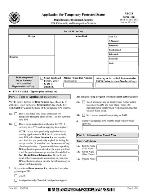 Form I 821 Instructions. Complete all sections of the form. We will reject the form if these fields are missing:.
