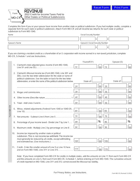 Form Mo-Cr. Complete this form if you or your spouse have income from another state or political subdivision. Certification of rent paid for 2022: