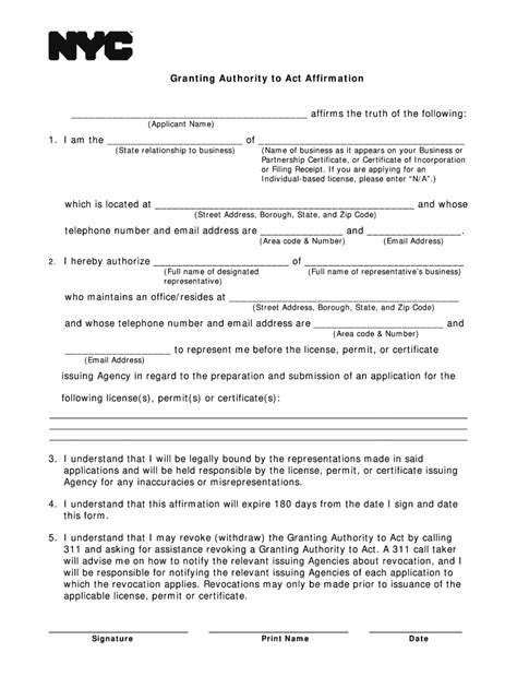 Web this video will show you how how to fill out a affirmation granting authority act for licensing matters only. Web this video will show you how how to fill out a affirmation granting authority act for licensing matters only. Web uniform granting authority to act affirmation (applicant name) am the (e.g., owner, partner, or corporate officer) of (name of business. I understand that this affirmation will expire 180 days from the date i sign and date this form. I understand that i may. Web affirmation granting authority to act (for licensing matters) authorization for registered representative to appear (for.