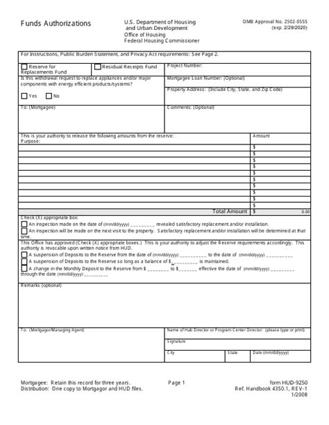 Hud 9250 Form. Web owner/agent must also submit the following with this form: 2) release of any additional amounts from the reserve.