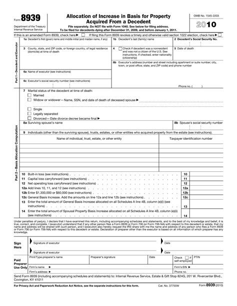 Irs Form 8939. November 2021) department of the treasury internal revenue service. Web form 8939 is an information return used by the executor (defined below) of a decedent who died in 2010: