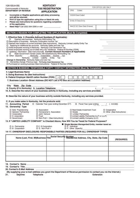 Ky Form 10A100. Web download the taxpayer bill of rights. Web kentucky tax registration application.
