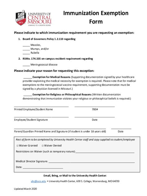 Immunization Exeption Form Mo Printable Printable Forms Free Online