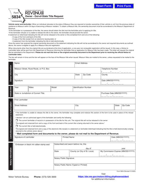 Mo Form 5834. When an individual relocates to the state of missouri they are required to transfer. Missouri department of revenue, find information about motor.