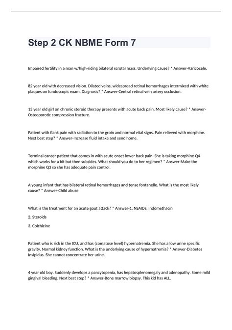 Nbme Step 2 Form 7. Back pain that is worse upon waking in morning = inflammatory back pain = pair diagnoses: There are answers missing from this test.
