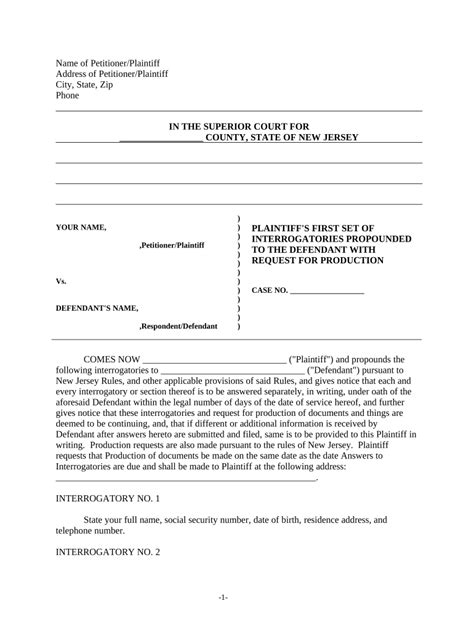 Nj Form Interrogatories. Uniform interrogatories to be answered by plaintiff in all personal injury cases (except medical malpractice cases): Web forms catalog lawsuits $5,000 or less (small claims) lawsuits $20,000 or less (special civil) lawsuits over $20,000 probation client portal submit court documents online (jeds) submit.