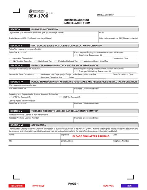 Pa Form 1706. To close a corporation tax account: Web official use only business/account cancellation form section iii withholding account cancellation information employer withholding tax account id reporting and paying under.