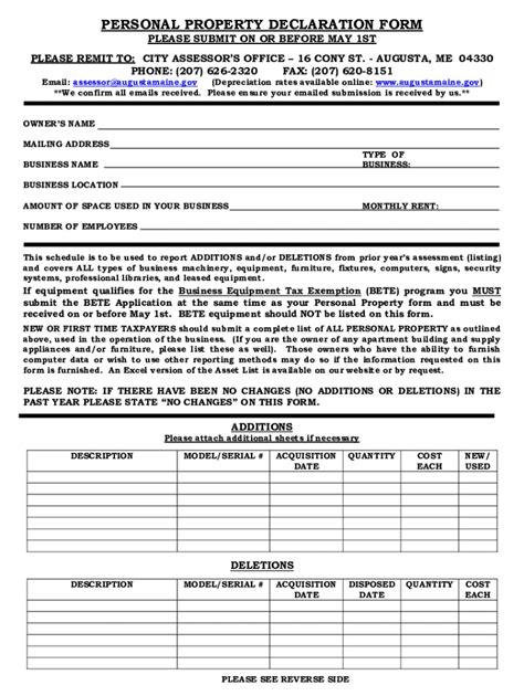 Personal Property Declaration Form. Electronic filing is available from late. Web overview individual personal property declarations are mailed in january.