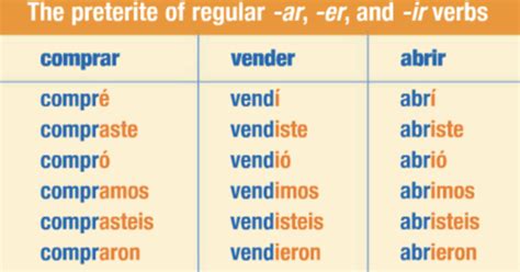 Preterite Tense Chart