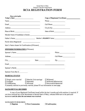 Catechumen for sacrament received baptism for rcia date: Web registration form for rcia st. Cletus parish registration check one: Catechumen for sacrament received baptism for rcia date: Web download and print rcia resources for every period of your parish’s formation program administrative aids. Web the following forms and handouts are meant to help pastors, assistants, and/or rcia coordinators to both gather and distribute basic information for a successful rcia. Web registration form for the rite of christian initiation of adults (rcia) please circle the number below, which describes your situation: