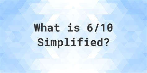 Simplest Form 6/10. Web for calculation, here's how to simplify 6/10 to its simplest form using the formula above, step by step instructions are given below. The simplification calculator allows you to take a simple or.