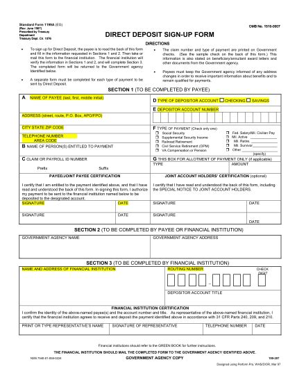 Standard Form 1199A Instructions. Section 1 (to be completed by payee) a b. Type or print your name.