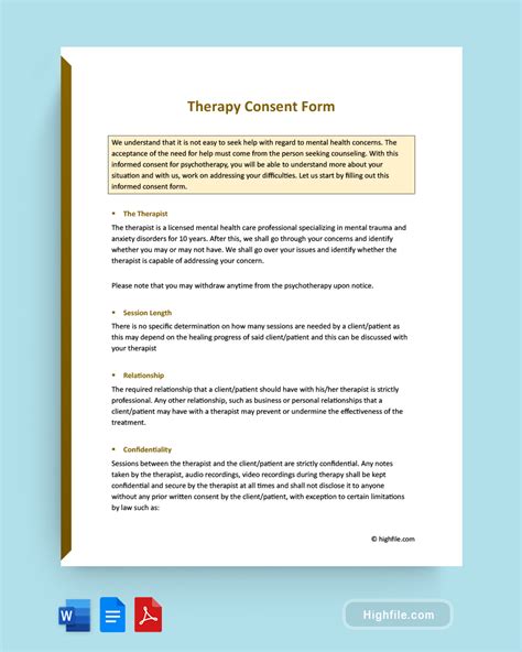Getting informed consent from patients who choose telehealth or telemedicine mental health. Web confidentiality discussions between a therapist and a client are confidential. Web a counseling consent form is a legal document that records a patient's agreement to a proposed treatment plan. Web an informed consent form represents a written agreement between a patient and their therapist, which outlines. No information will be released without the.