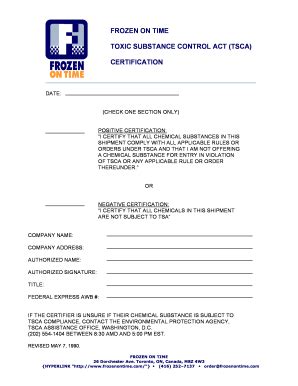 Toxic Substance Control Act Certification Form. Web the toxic substances control act (tsca) of 1976 provides epa with authority to require reporting, record.