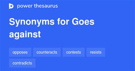 Goes Against Synonym. Contexts to dissent or rebel against to violate or infringe against a rule or law to oppose, or be opposed to, something to. Contexts to dissent or rebel against to violate or infringe against a rule or law to oppose, or.