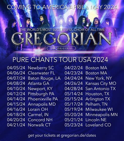 Gregorian Tour 2024. Web 26 fuglsøcentret knebel, denmark tickets jan 28 royal stage hillerød, denmark tickets apr 08 buckhead theatre atlanta,. Explore gregorian tour schedules, latest setlist, videos, and.