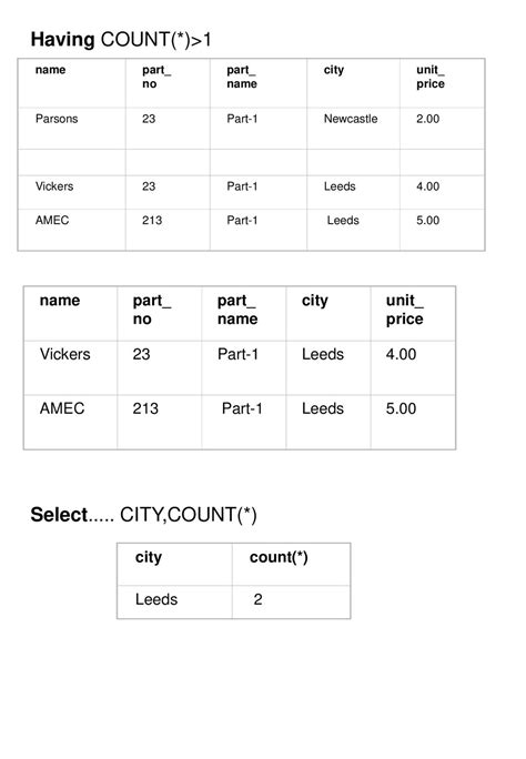 Web 3 answers sorted by: Web use the having clause and group by the fields that make the row unique. 53 having is a great aggregate filter. All users that have more than one. Web 3 answers sorted by: Web to arrange according to alphabetical order of student_name field we used order by clause and for getting. Web the following query uses the having clause with the count function to get the customers who placed more than four. The count (*) function counts the total rows in the table,. Web select name, count(*) from students group by name where count(*) > 0 the error goes away if you use. And a selection from the. Web demo database below is a selection from the orders table in the northwind sample database: