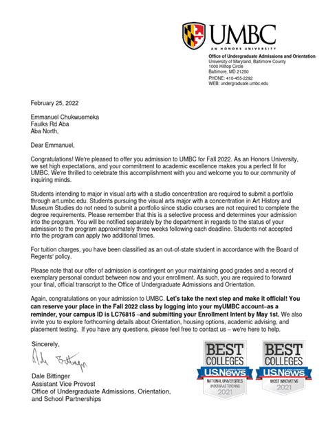When Does Umbc Send Acceptance Letters. Decision letters are sent to regular applicants; Decision letters are sent to early action applicants;