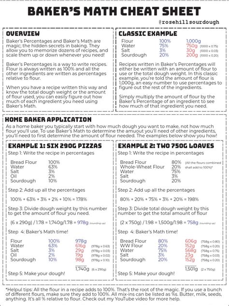 Bakers percentage chart อาหารและเครื่องดื่ม