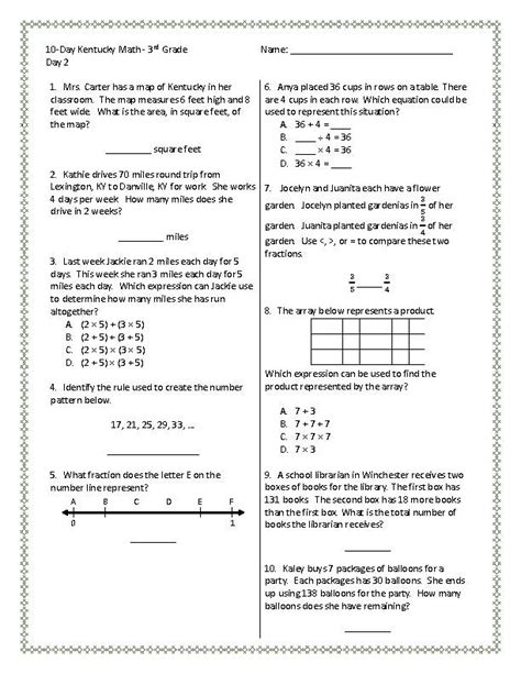3rd Grade Kentucky KSA Math Test Prep / Standards Review 10 Days of