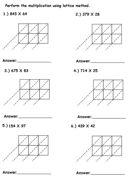 3 Digit Lattice Multiplication Worksheets