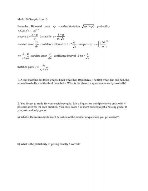 Math 156 sample questions exam 3