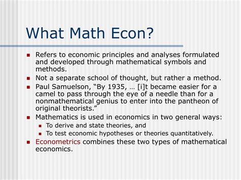 Math And Econ. Web math is a tool for understanding economics and economic relationships can be expressed mathematically using algebra.