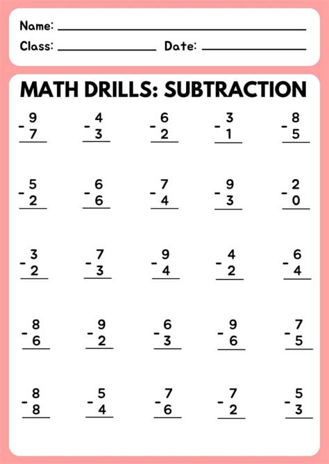 Web a subtraction drill is a worksheet with all of the single digit problems for one operation on one page. A student who has memorized.