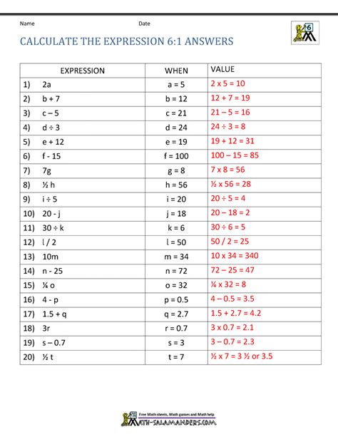 Math Expressions Grade 6 Answer Key. Here you will find a range of algebra worksheets to. Welcome to our expressions and equations 6th grade worksheets.
