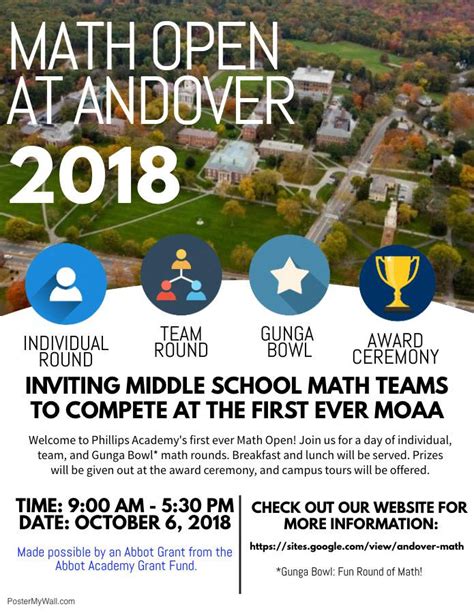 Web over 500 middle schoolers hailing from six countries and over 20 states came together to compete in the 6th. Web moaa is an annual mathematics competition for middle schoolers, hosted by phillips academy andover in andover,. Web the math open at andover is an annual mathematics competition for middle school teams, hosted by phillips academy.