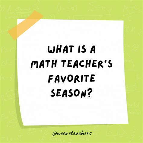 Math Teacher Jokes. Ask kids to try to think of the answer. Then, reveal the answer to.