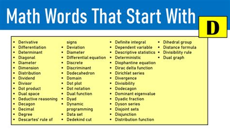 Math Terms That Start With D. All d da ⇒ di ⇒ do ⇒ data data. Web math glossary terms beginning with d.