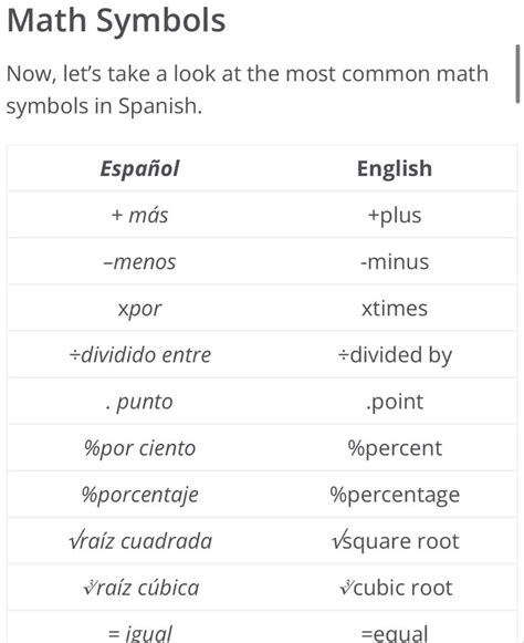 Web 19 rows learn some of the most common and key math terms in spanish, from basic arithmetic to algebra, geometry, and.