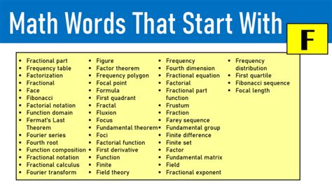 Math Words That Start With F. Web math glossary terms beginning with f. Web find math words that start with f in the alphabetical index of mathwords.com, a comprehensive online dictionary of math.
