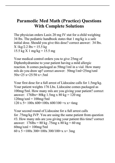 Web math quizzes for emts and paramedics. Web paramedic med math (practice) 3.4 (17 reviews) get a hint the physician orders lasix 20 mg iv stat for a child weighing 34. Practice the most basic medical calculations on this page to get started. Web med math 101: Web the total volume of the dopamine solution is 250 ml, and it contains 200 mg of dopamine.