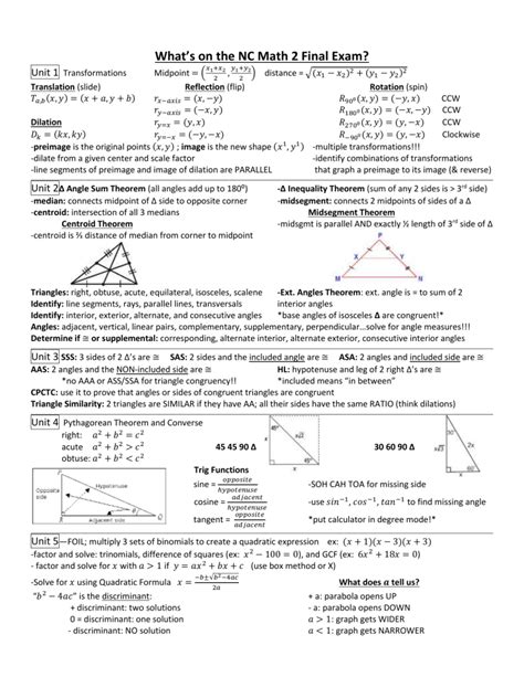 Nc Math 2 Final Exam. Math 2 final exam review quiz for 10th grade students. (see quiz for extra credit opportunity).