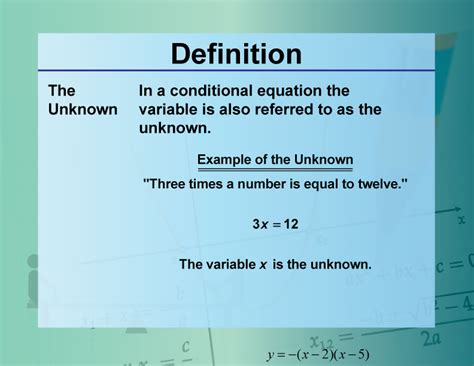 Unknown Definition Math. Web in mathematics, an unknown is a number that is not known. Unknown numbers are commonly used in algebra , where they are.