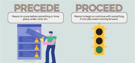 Web proceed means to move ahead, to continue. Web there’s one more thing we want to clarify: The use of preceding and proceeding. As shown in the tables above, preceding is. Our first sentence, then, calls for precede, because the skills day will come before.