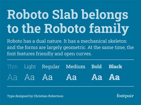 Web roboto slab is a slab serif font based on roboto. The font is licensed for. Web explore roboto slab available at adobe fonts. Web download the roboto slab font by christian robertson, a serif font with 3 styles: A slab serif typeface with 4 styles, available from adobe fonts for sync and. Web this is the roboto slab family, which can be used alongside the normal roboto family and the roboto condensed family.