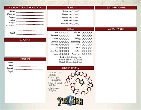 7Th Sea Character Sheet. Web this app is designed to help you create a character for the tabletop rpg 7th sea (second edition). Below is a sample of the official 7th sea 2nd edition.